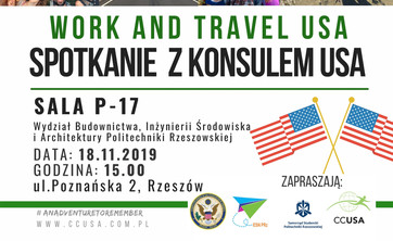 W dniu 18 listopada br. odbędzie się spotkanie informacyjne na temat wyjazdów studenckich do USA - Work &Travel USA.