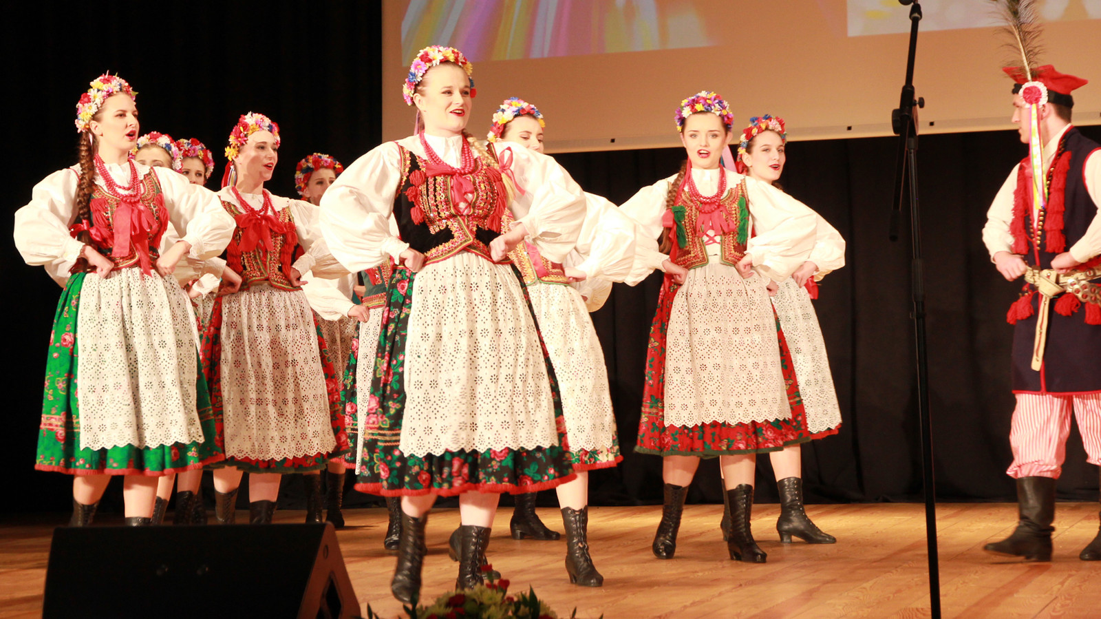 Podczas koncertu można było zobaczyć barwne tańce narodowe: poloneza i krakowiaka, zabawną polkę warszawską oraz dynamiczne tańce ludowe: sądeckie, Krakowiaków Wschodnich , przeworskie i rzeszowskie. Zespół zaśpiewał również piękne pieśni „Kochajmy się bracia mili”, „Kraj rodzinny matki mej”, „Maki” i „Olszynkę”.