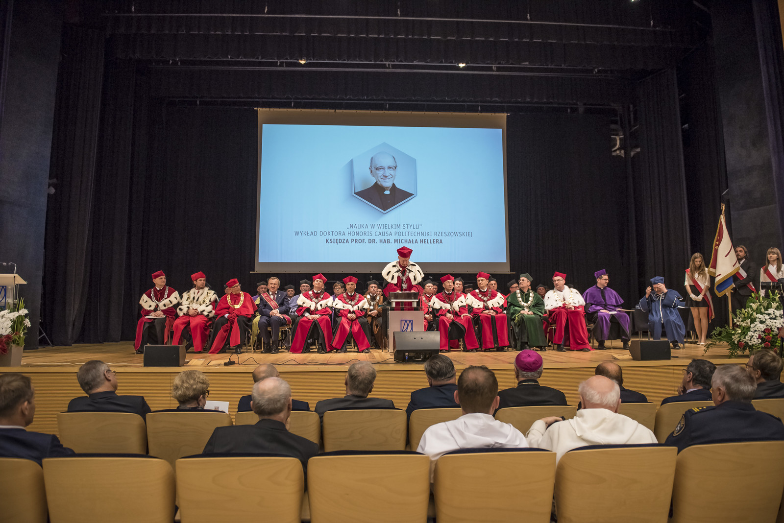 Wicepremier Jarosław Gowin wyraził najwyższe uznanie dla dotychczasowych osiągnięć naukowych Księdza Profesora. Dodał, że honorując ks. prof. Hellera tą zaszczytną godnością akademicką, społeczność rzeszowskiej Uczelni doceniła światowej sławy specjalistę w dziedzinie kosmologii, filozofii przyrody i relacji nauka - wiara oraz popularyzatora nauki.