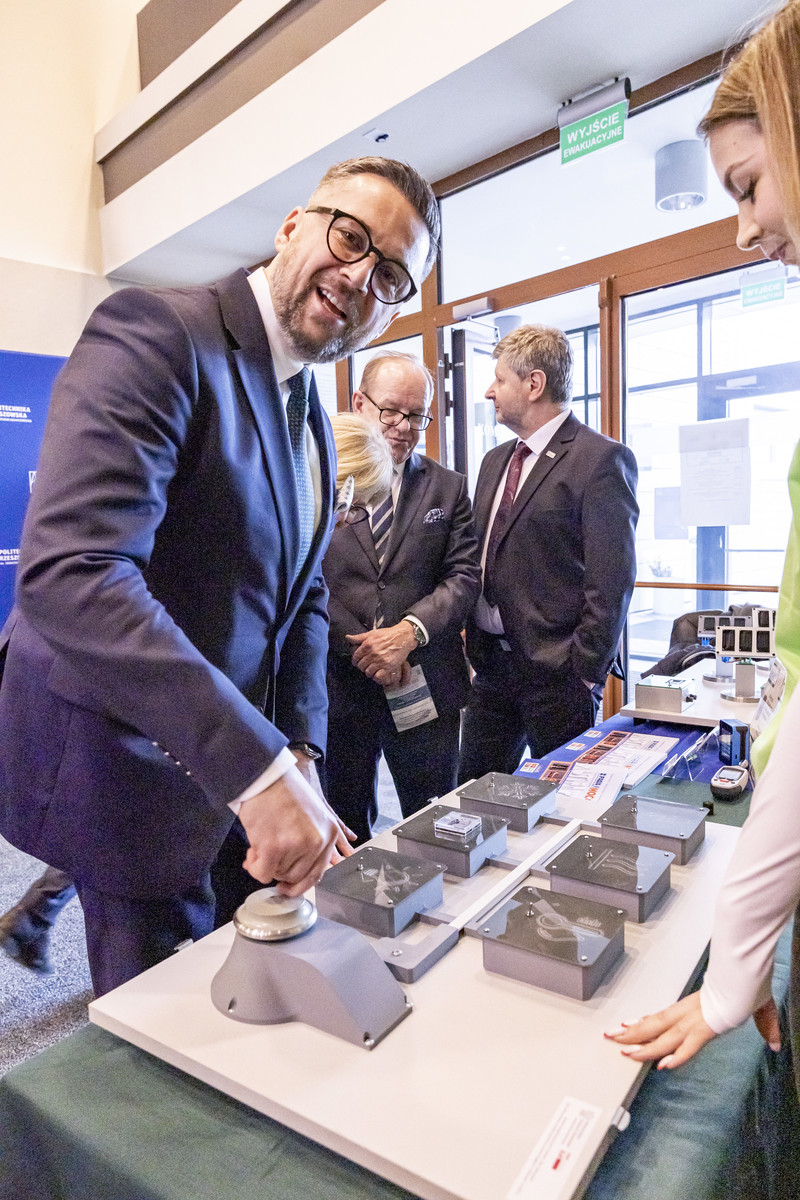 Minister Marcin Kulasek spotkał się również z naukowcami realizującymi zaawansowane badania naukowe na naszej uczelni. Odwiedził Laboratorium Wodorowe oraz Pracownię Badań Uszczelnień Silników Lotniczych działającą w ramach Uczelnianego Laboratorium Badań Materiałów dla Przemysłu Lotniczego. Kierownik laboratorium dr hab. inż. Marcin Drajewicz, prof. PRz zaznaczył, że jednostka umożliwia prowadzanie badań w atmosferze wodoru i jego mieszanin w warunkach rzeczywistych. Obecnie istnieje duże zapotrzebowanie na badania w zakresie paliw wodorowych oraz nowych materiałów, a Laboratorium Wodorowe jest pionierskim ośrodkiem w tej dziedzinie, również na skalę europejską.